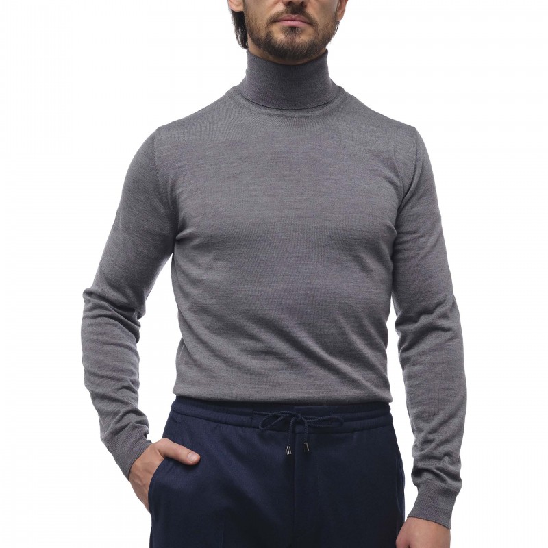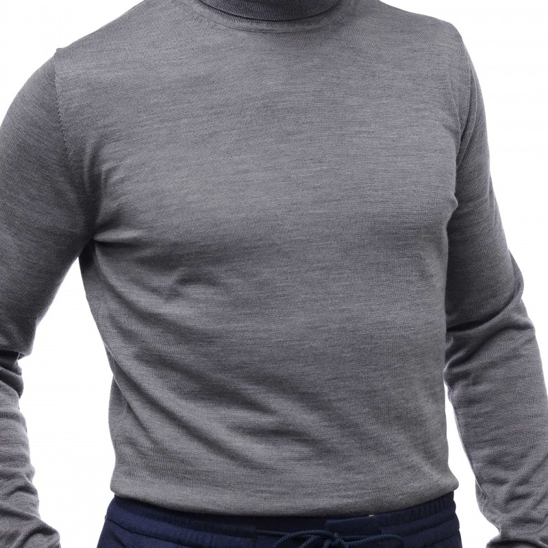Pulover din lana merinos 100%, cu guler tip helanca.
