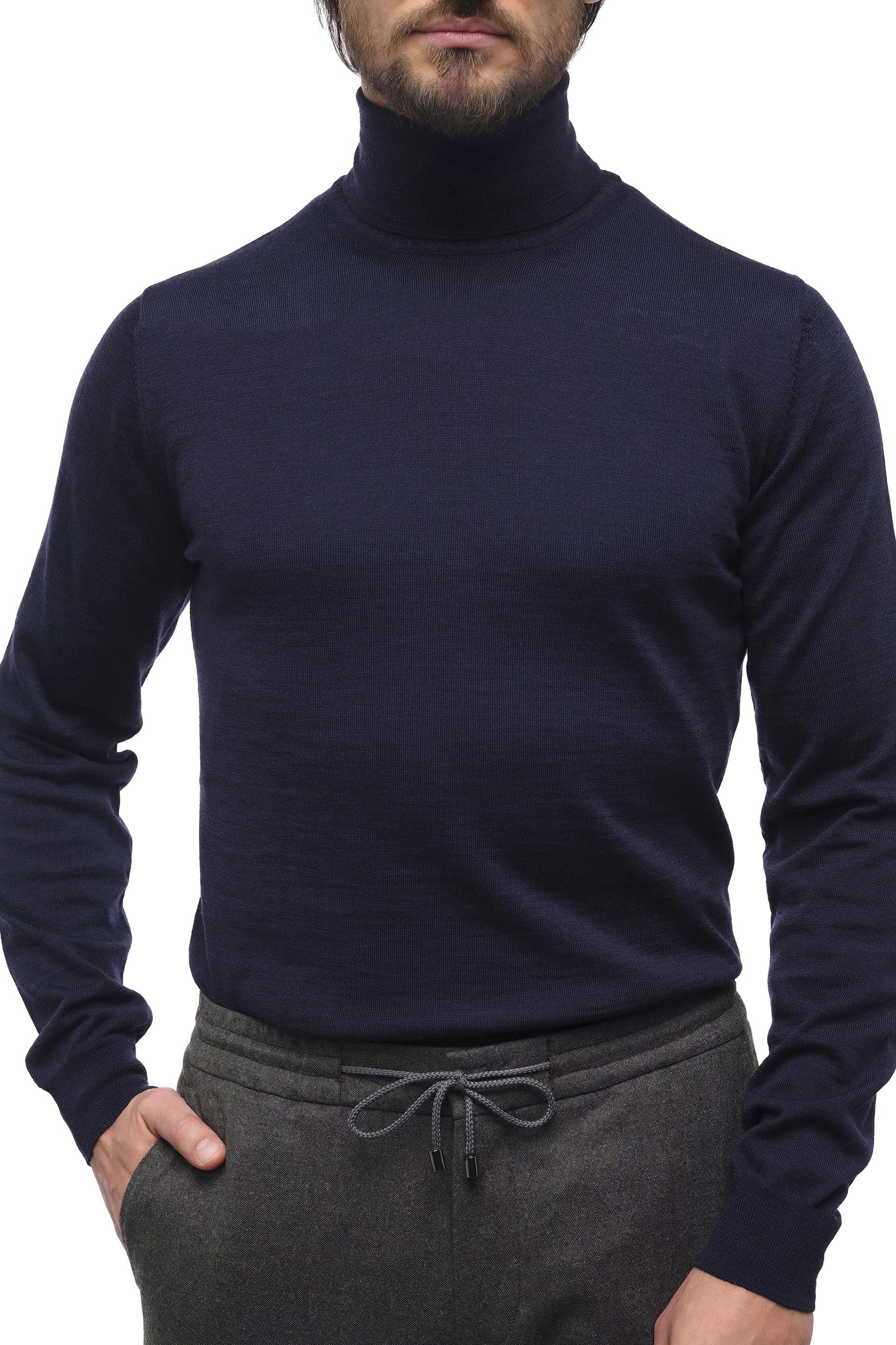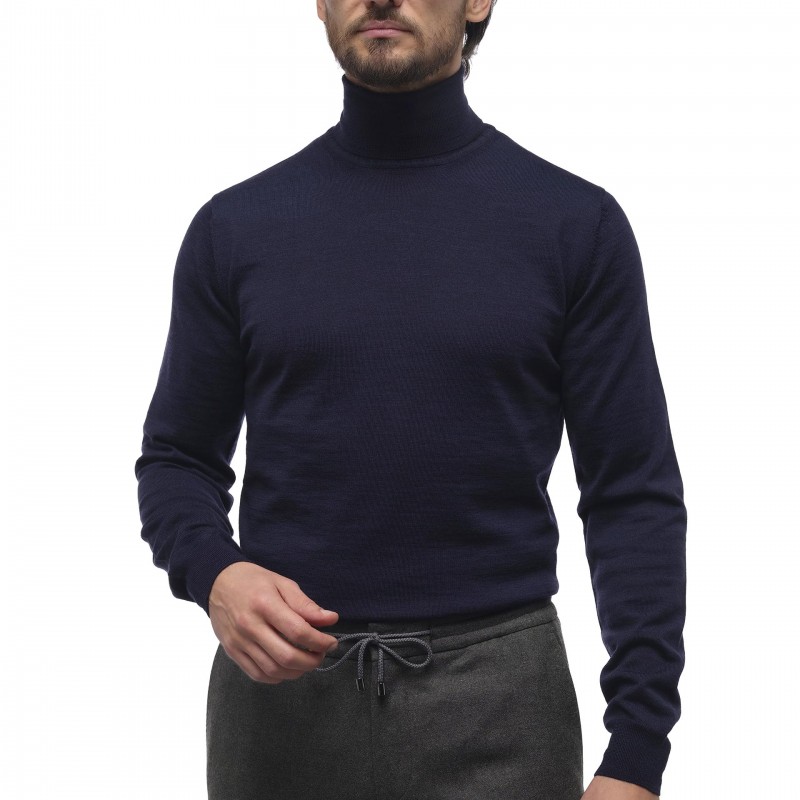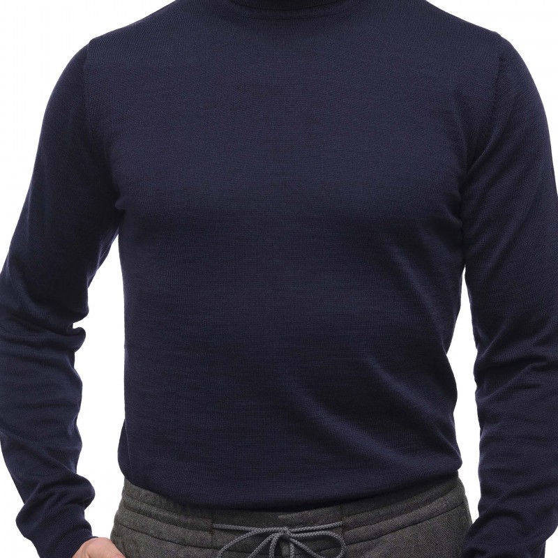 Pulover din lana merinos 100%, cu guler tip helanca.
