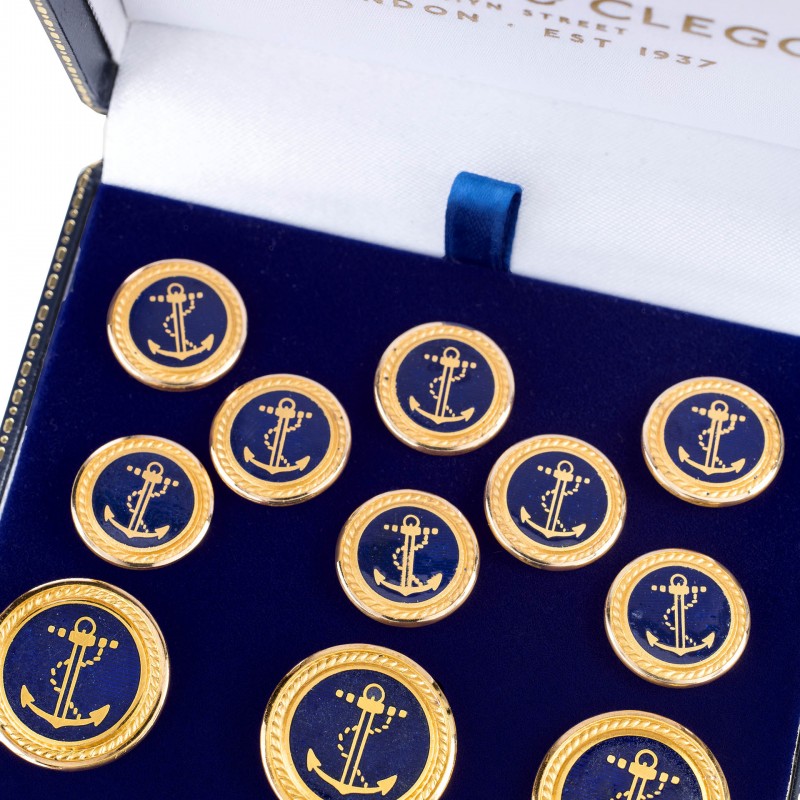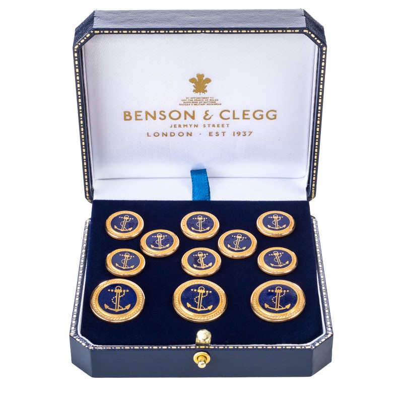 Choose the Nelson blazer buttons, a set of beautifully crafted golden-plated navy buttons, perfect for every gentleman that wants to add refinement to his blazer.
