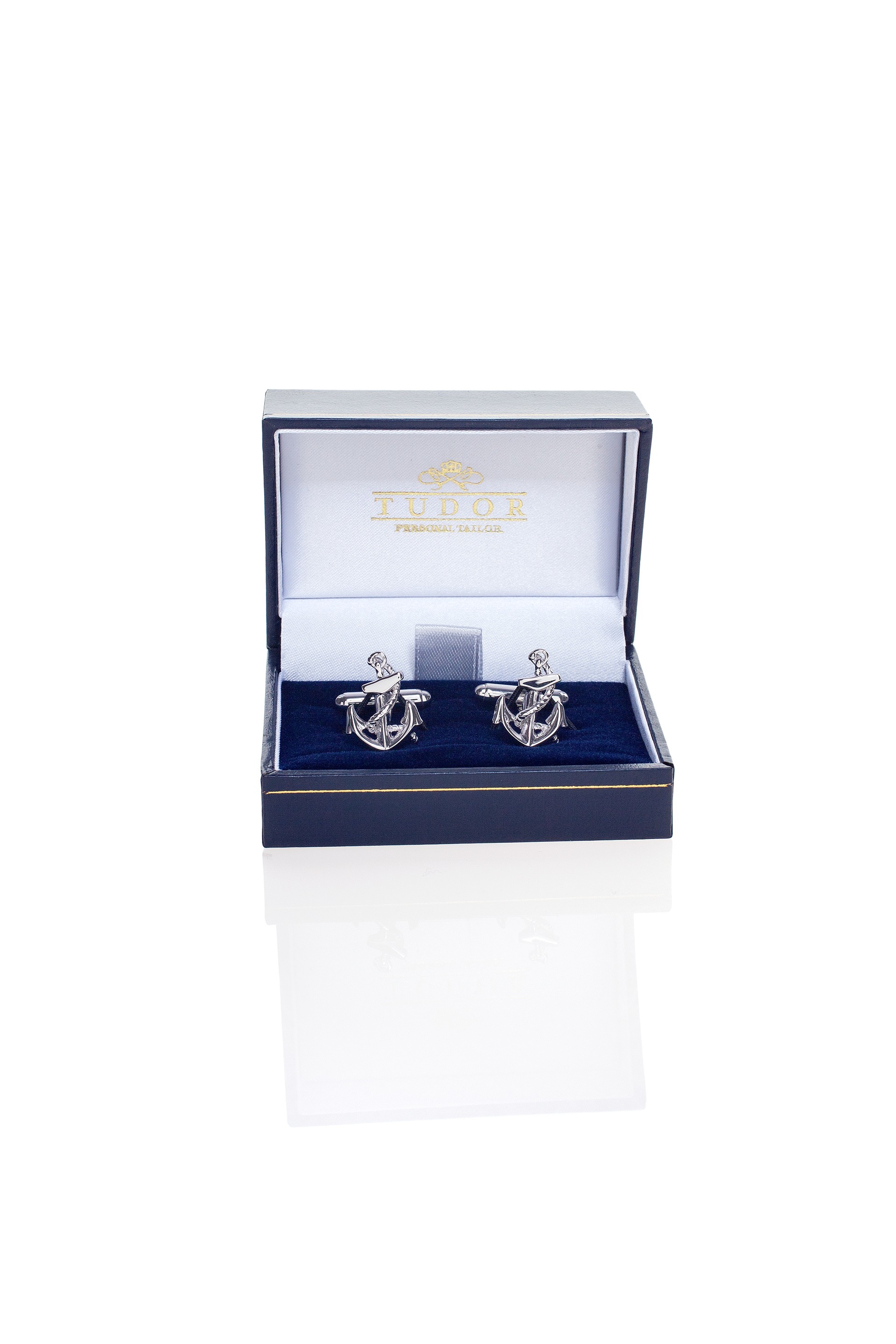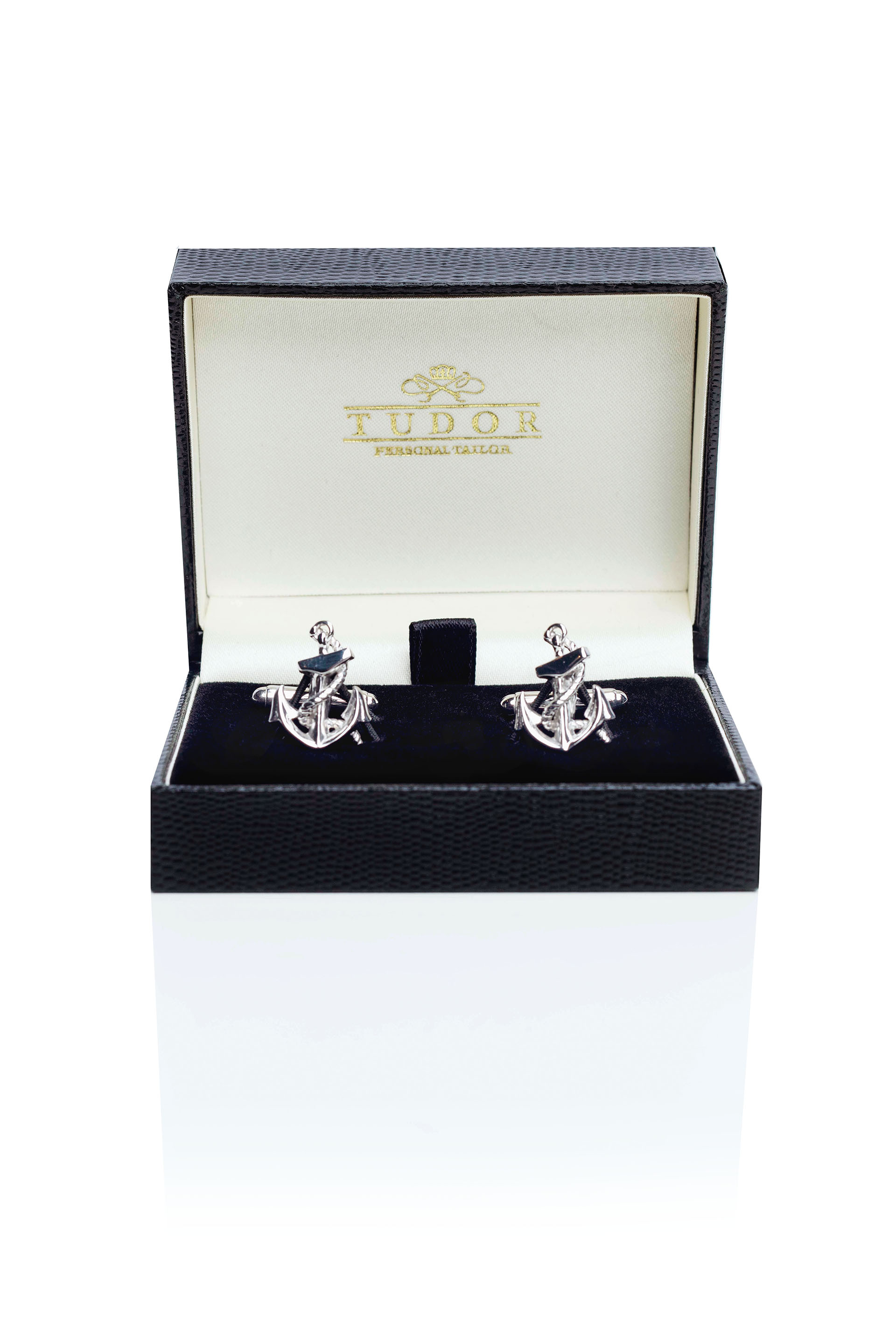 Rhodium cufflinks anchor shaped.