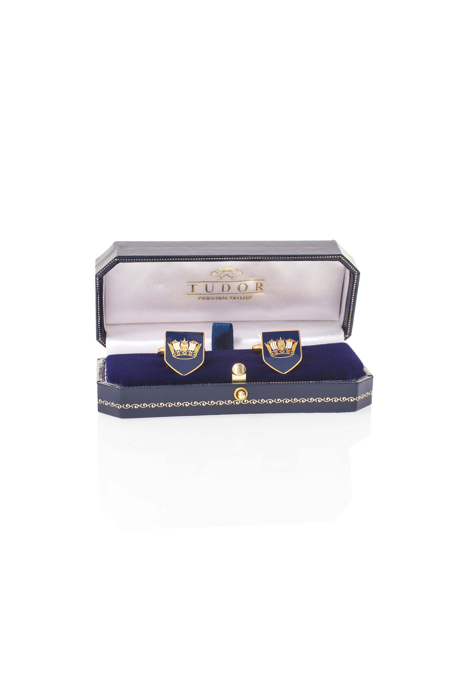 Dark blue rhodium cufflinks with the Royal Navy Coat of Arms symbol.
