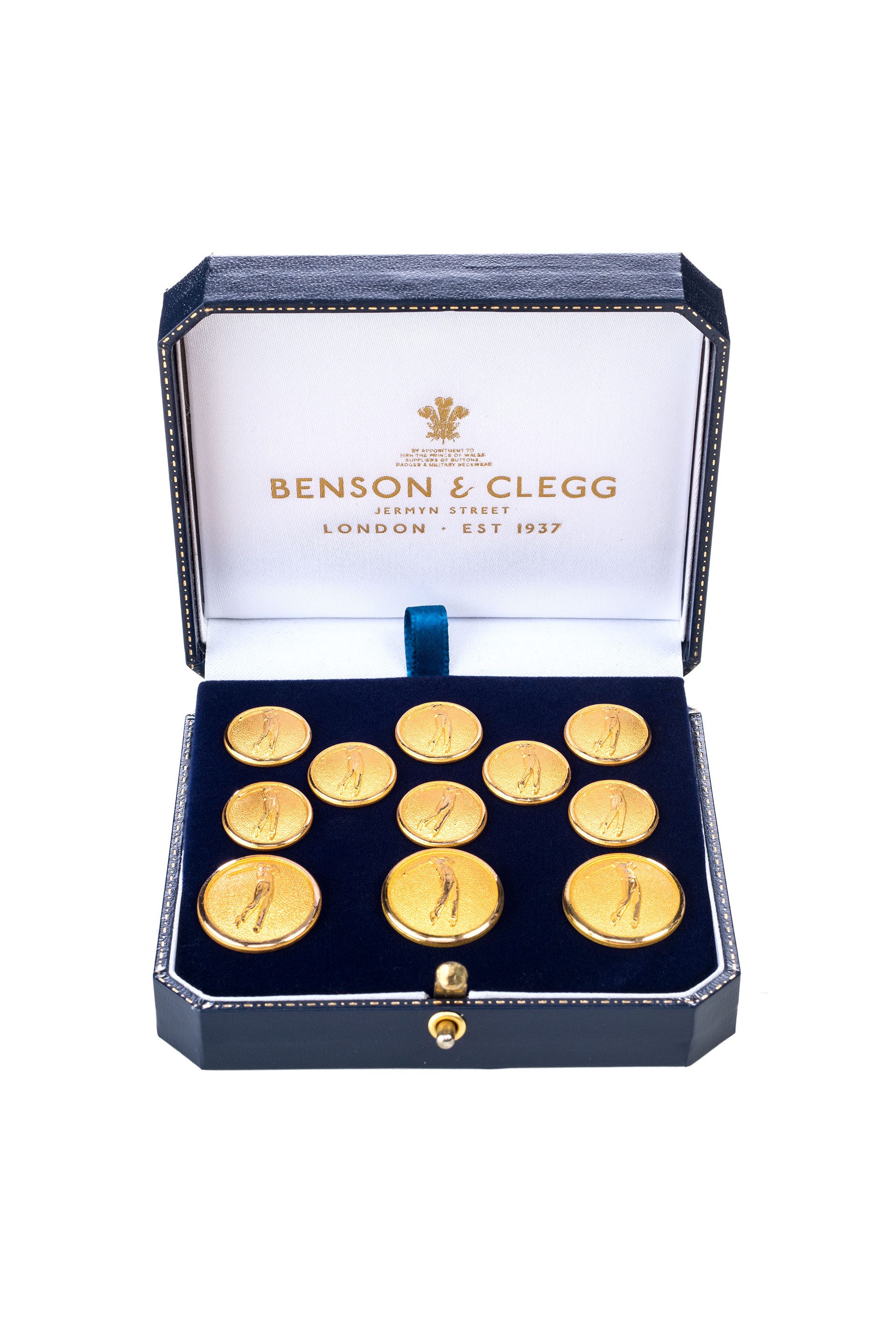 Made for the golf loving men, the Nicklaus blazer buttons are an elegant choice for a suit jacket. The buttons are gold-plated and are made by Benson & Clegg in England.