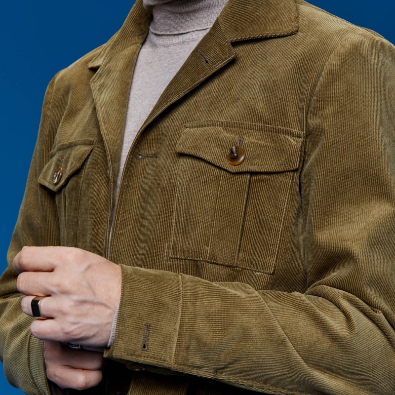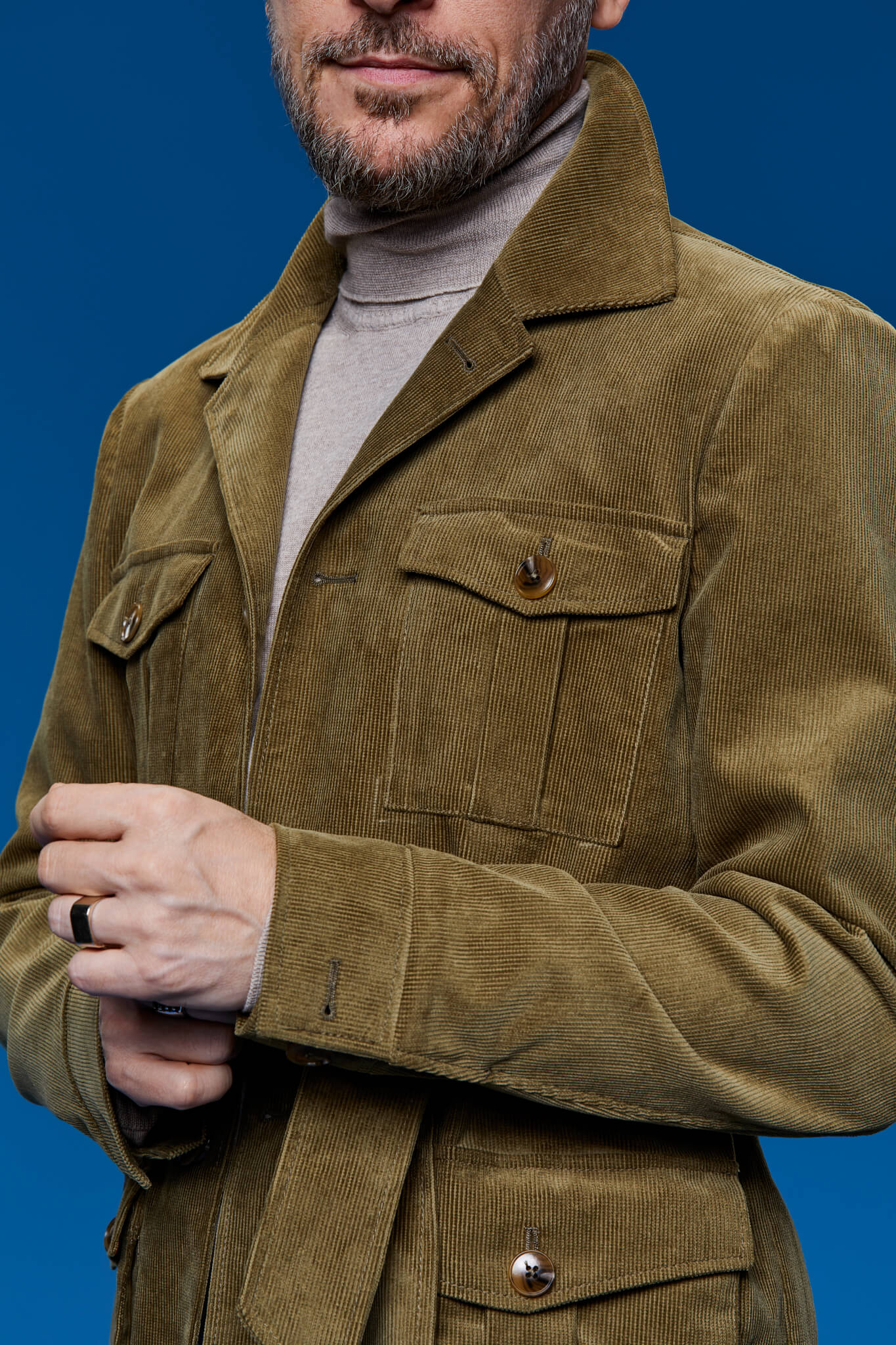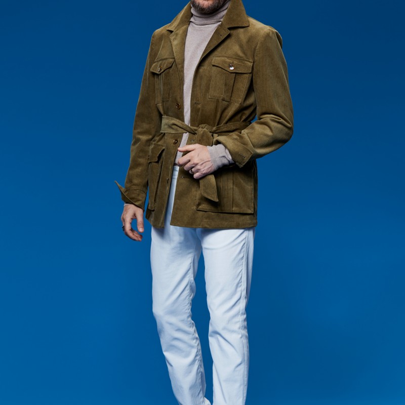 A fresh approach to classic tailoring - the velor safari jacket brings a touch of nobility through the velvety shine of the fabric, on a utilitarian, practical and versatile construction.