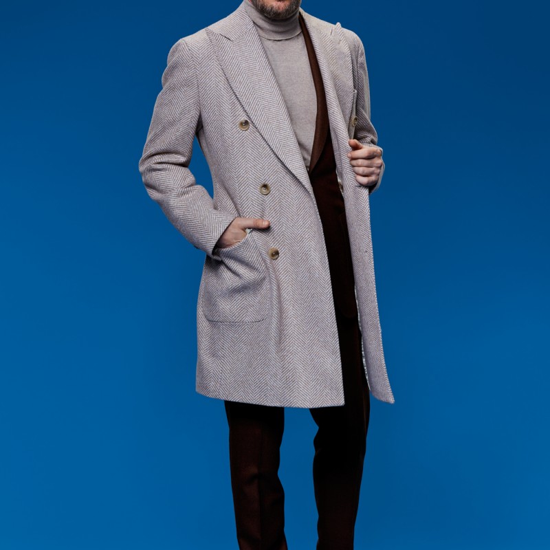 Wool and Alpaca coat, in warm shades of cream, for a refined and imposing look.