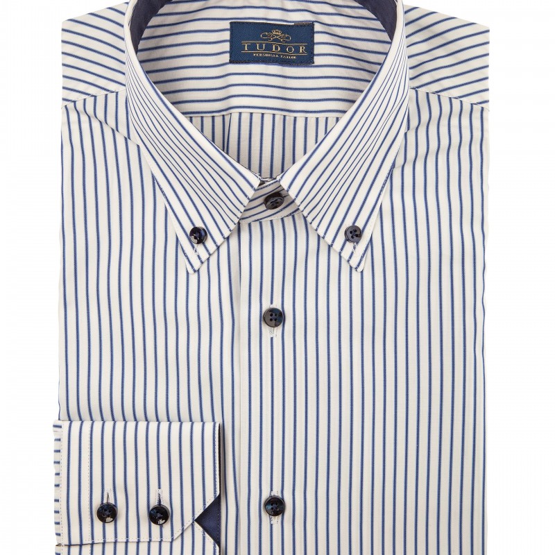 Business-casual shirt stripes made of 100% cotton with navy detail.