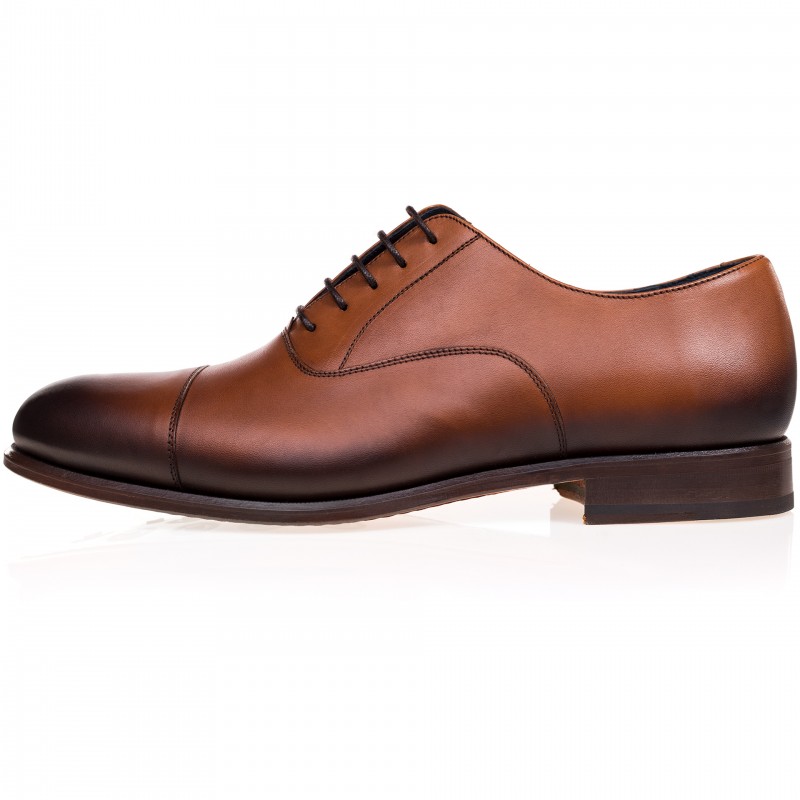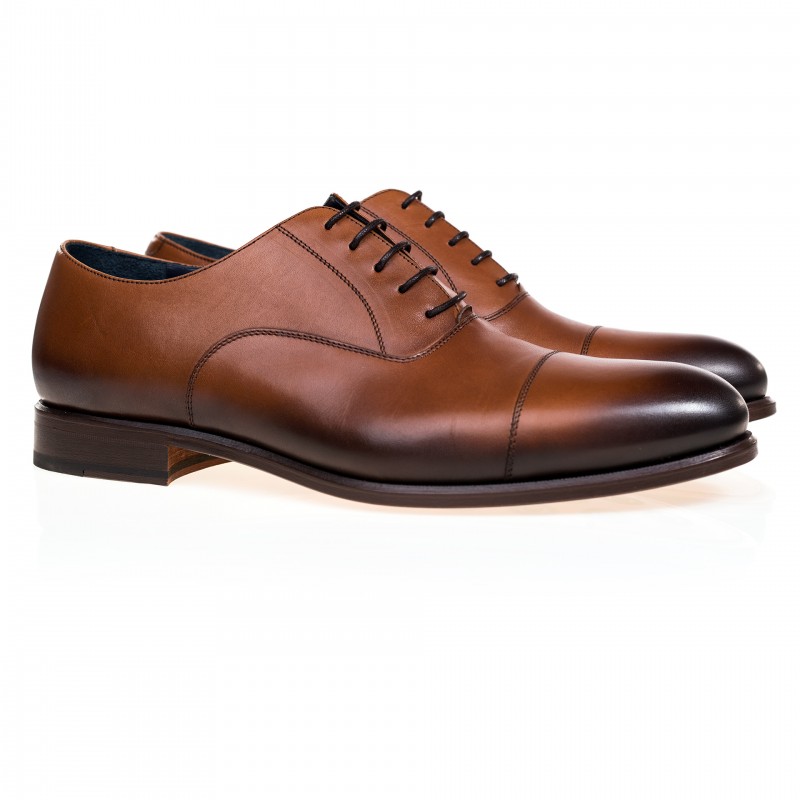 The shoe displays a cap-toe, giving the shoe personality and refinement that will suit every gentleman.