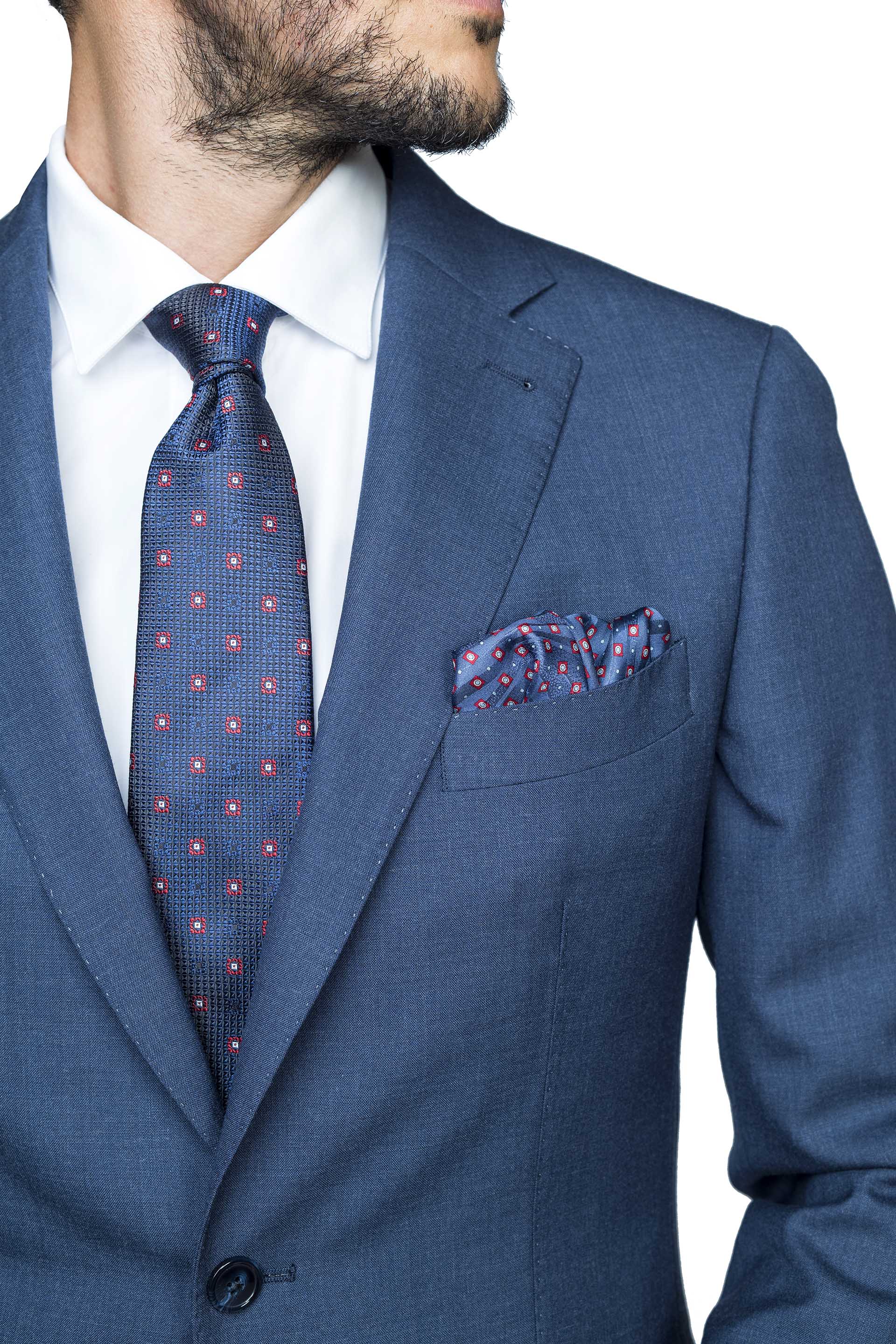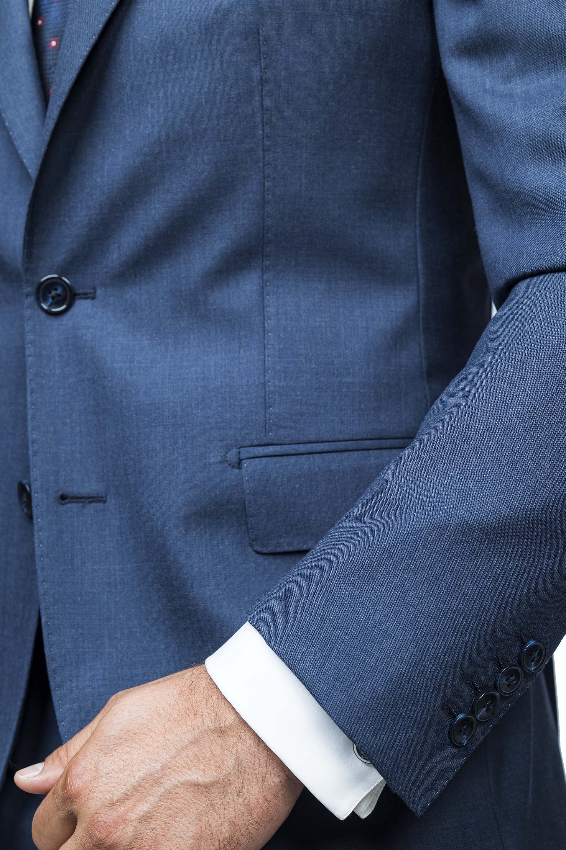 The plain blue color of the Moss suit offers a casual business look, suitable for daytime meetings and less formal events. The 100% wool fabric and its weight (260g / m²) give the suit a very good resistance over time.