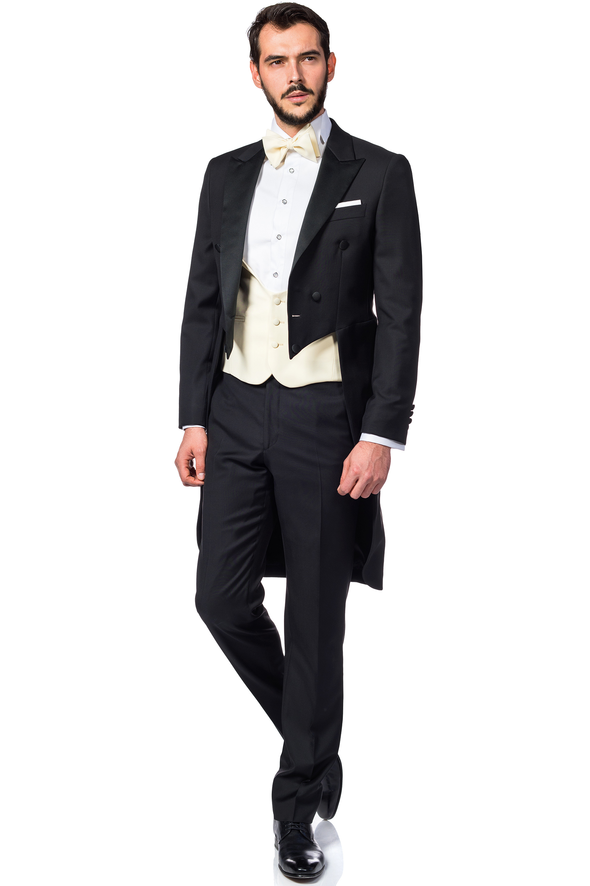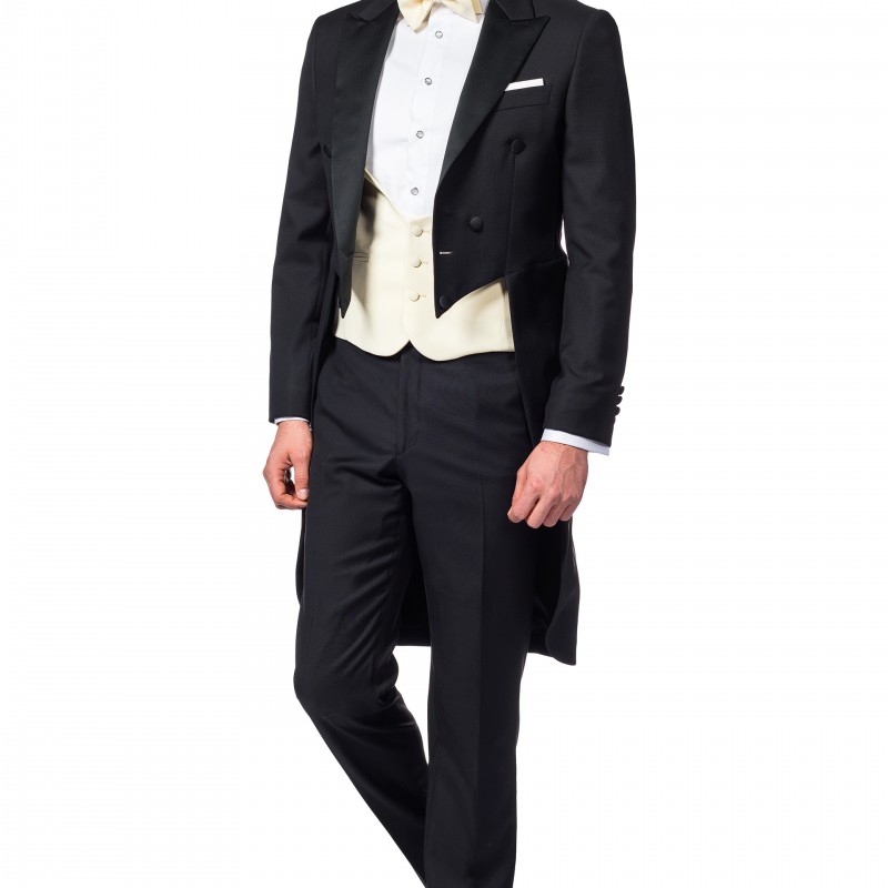 The Ahiles evening dress is the famous tailcoat or, as the English call it, "white tie". It is the highest male dress code, and today it is worn only if you are invited to a ball of the Royal Family.