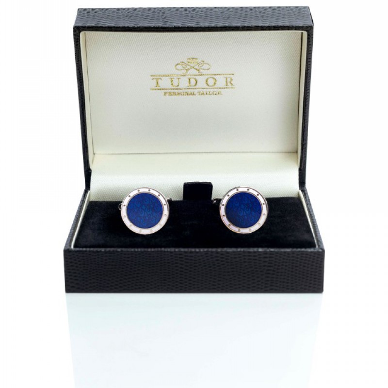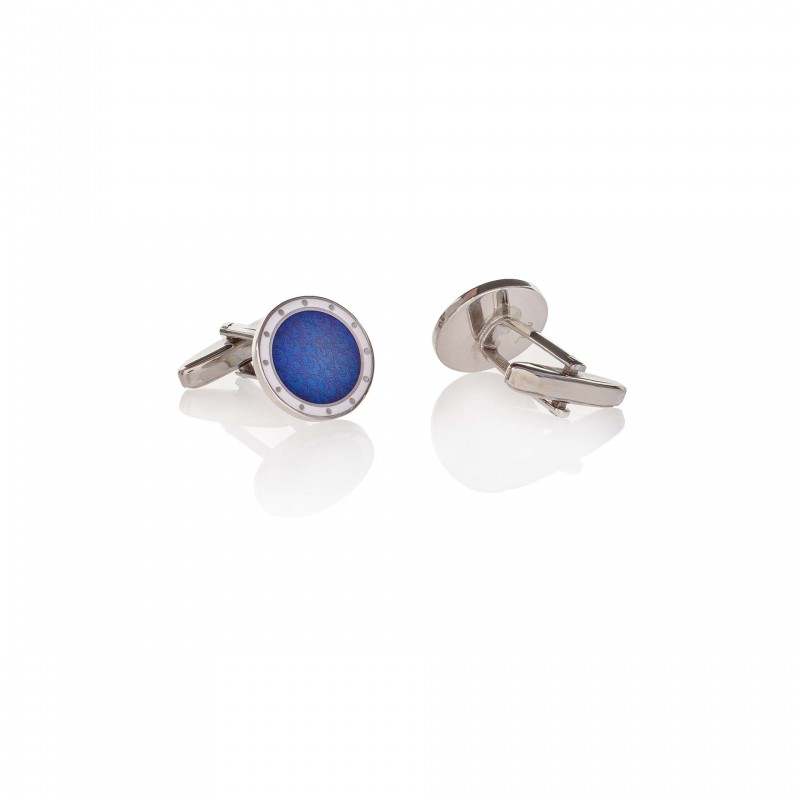 Butoni din rodiu, cu insertii de minerale de culoare albastra.