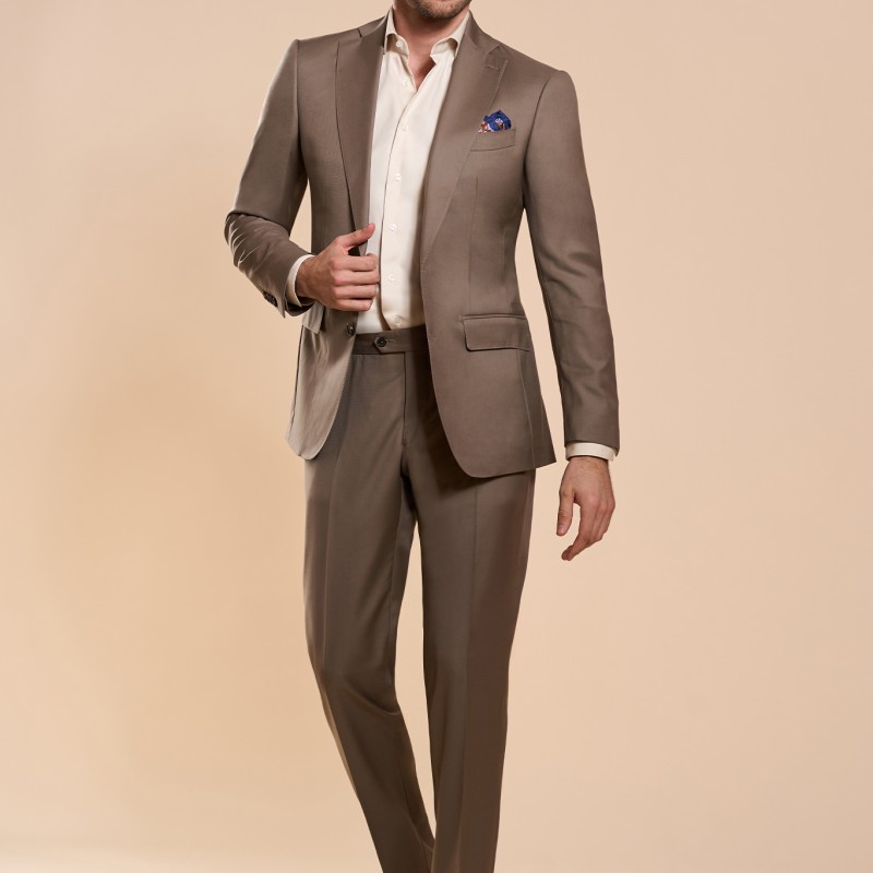 Un costum clasic pentru zile însorite, în doua piese ce pot fi ușor mixate în ținute alternative. Culoarea caldă rafinată și finețea lânii aduc o sofisticare fină și nonșalantă.