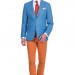 Ținuta Caraibes are ca piesă principală un sacou în carouri potrivit sezonului de primăvară-vară. Țesătura sacoului este foarte ușoară și respirabilă datorită combinației de in, mătase și lână. Pantalonii portocalii complimentează caroiajul sacoului.