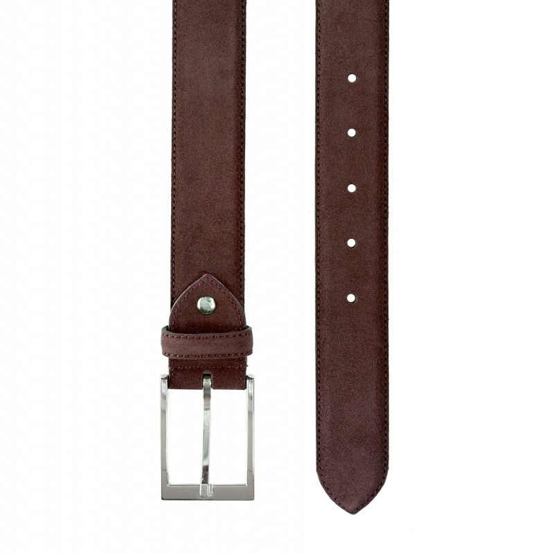 Curea confectionata din piele suede 100% naturala, in nuanta maro, cu catarama metalica argintie. Lungimea se poate adapta in functie de talie, iar latimea acesteia este de 3.5 cm.