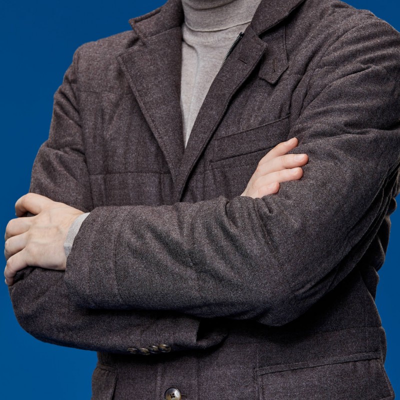Jachetă casual matlasată, practică și călduroasă, abordabilă în ținute casual și sport.