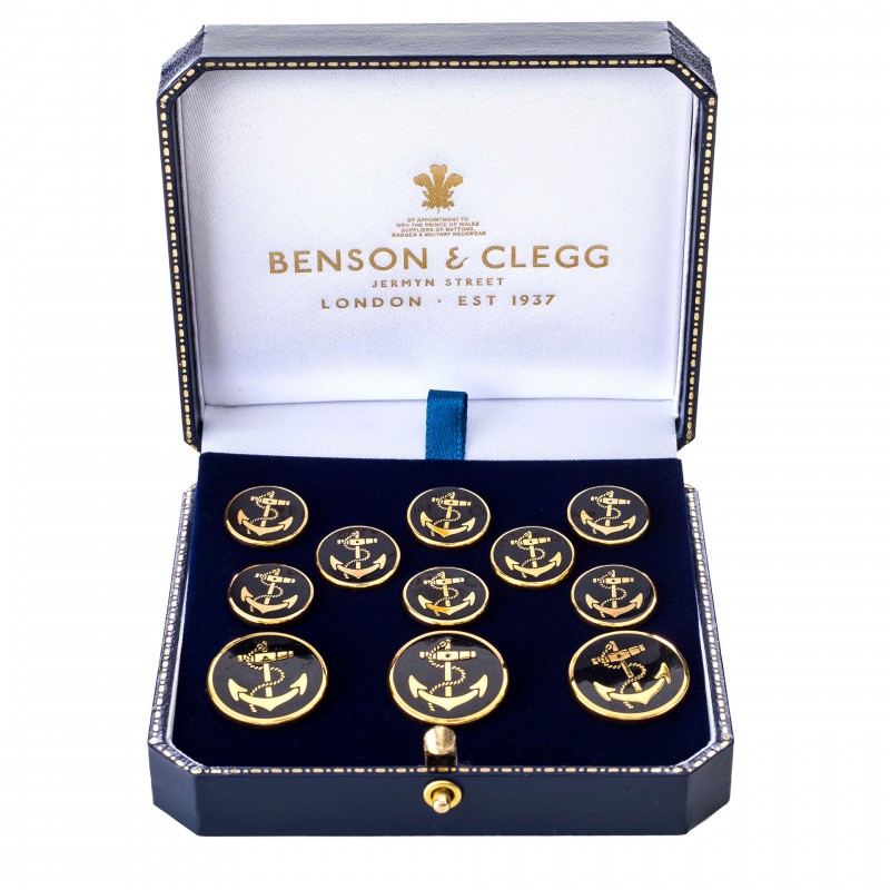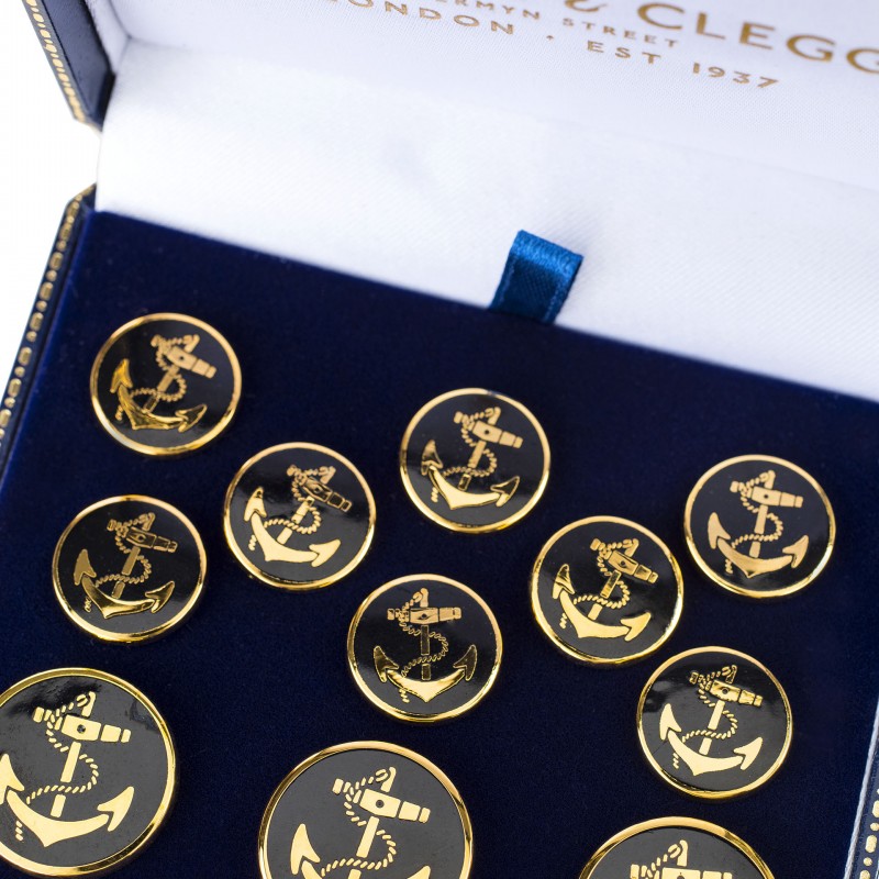 O pereche de nasturi stilati si rafinati, ideali pentru un sacou clasic de inspiratie maritima. Setul contine nasturi fabricati in Anglia prin procese traditionale britanice provenite din secolul al 18-lea.