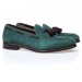 O pereche de incaltari comode de culoare verde cu detalii maro, Loaferii odata purtati devin un atu in orice outfit de vara al unui gentleman stilat, putand fii asortati atat in vestimentatiile de plaja sau in cele de petrecere.