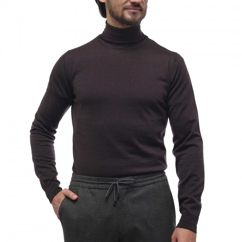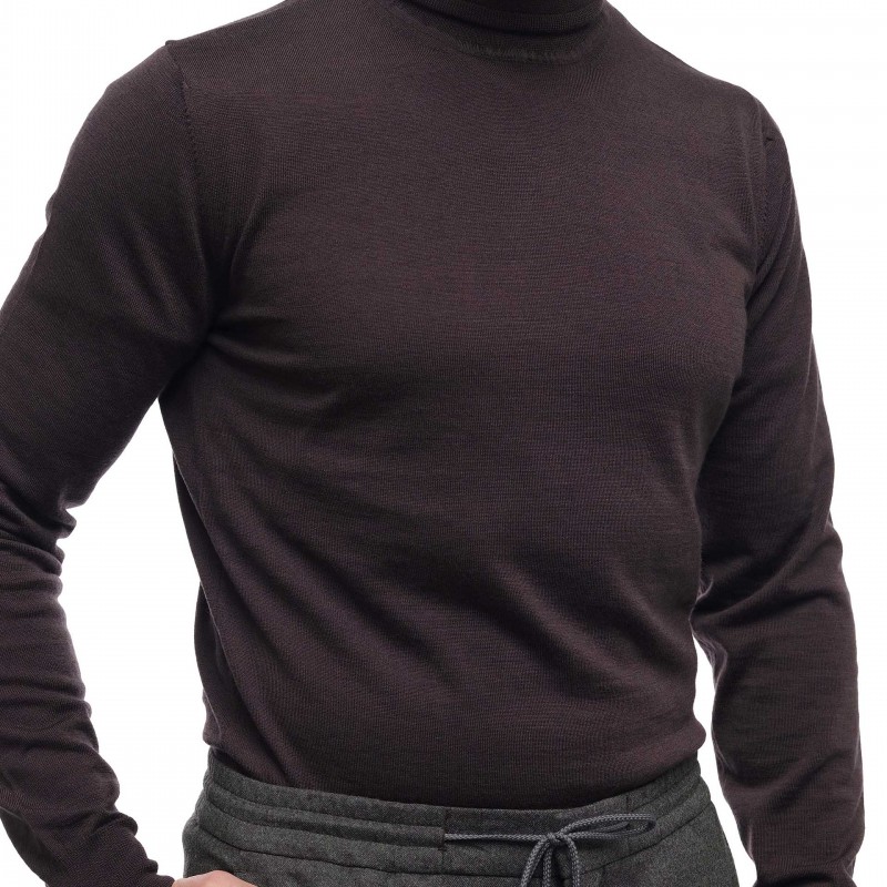 Pulover din lana merinos 100%, cu guler tip helanca.