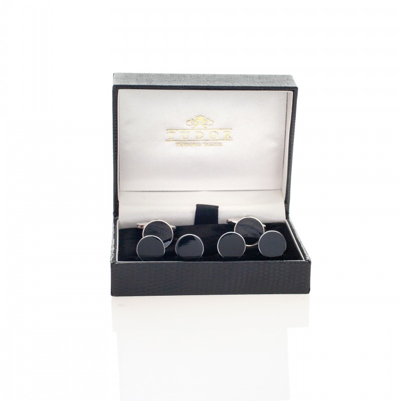 Set butoni argintii cu piatra onix, speciali pentru tinuta de ceremonie.
